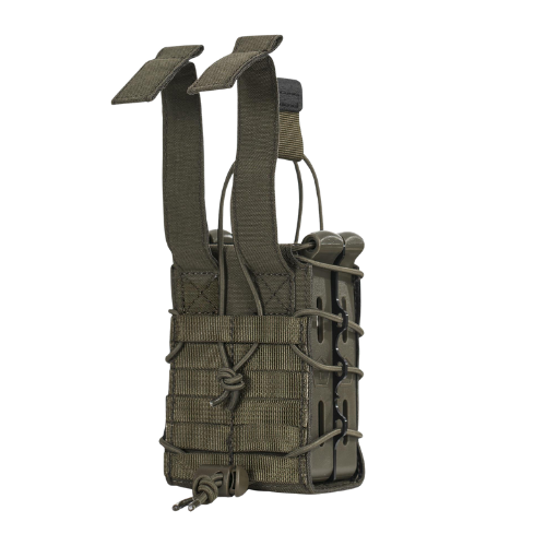 PENTAGON – RIFLE MAG PUCH DOUBLE ELPIS K17076 on vastupidav kahekordne salvetasku, mis on mõeldud 5.56 mm (M16) ja 7.62 mm (G3) salvede turvaliseks ja kiireks kasutamiseks. Tasku on valmistatud tugevast 500D Cordura® laserlõigatud nailonist ning sellel on 3 mm paksune Kydex-raam, mis hoiab tasku vormis ja tagab kiire ligipääsu. Libisemisvastane sisepaneel ja reguleeritav elastne bungee-kinnitus hoiavad salved kindlalt paigal ka aktiivse liikumise ajal.